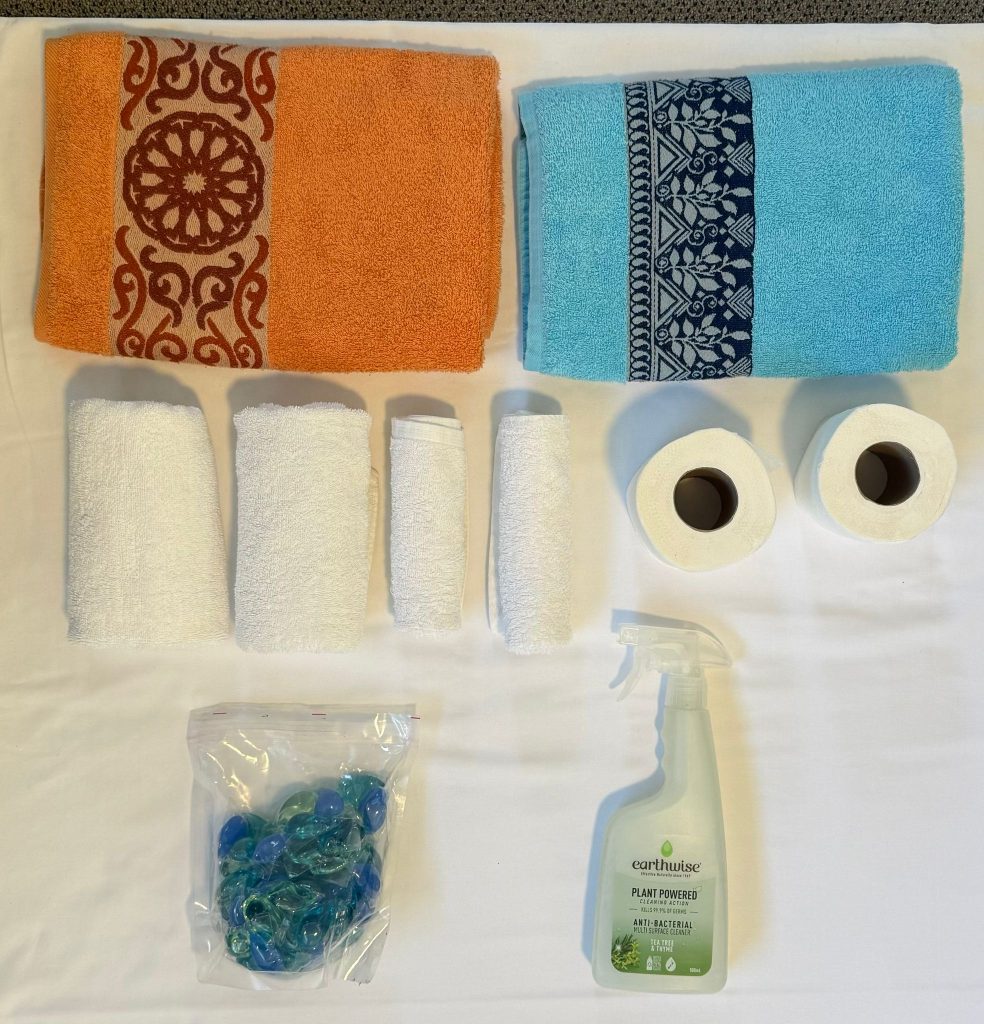 • Laundry pods + portable travel clothesline