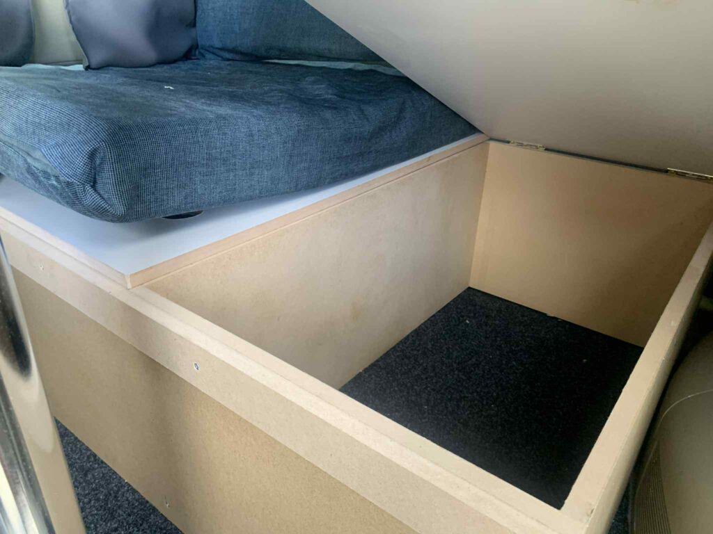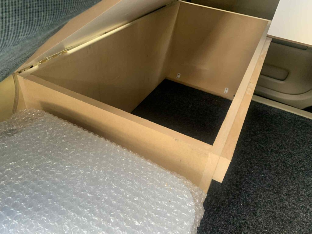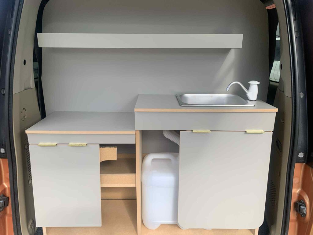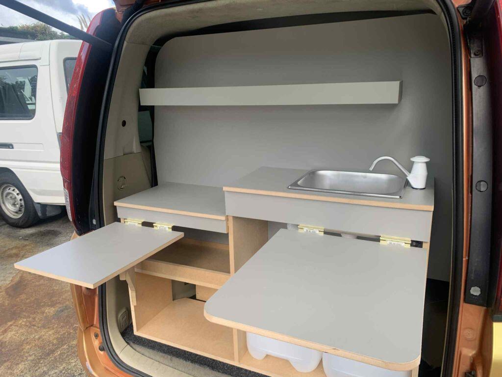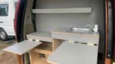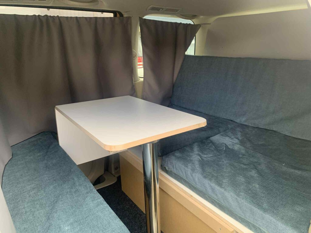 *Brand-new interior with table set up, double big mattress and kitchen at the back. Some camping gear included.. be the first backpacker travelling with it!